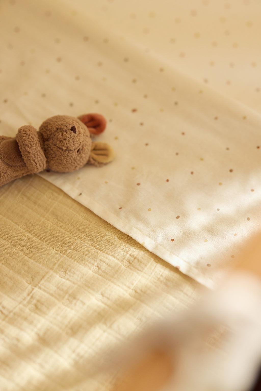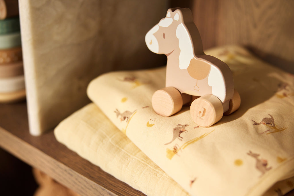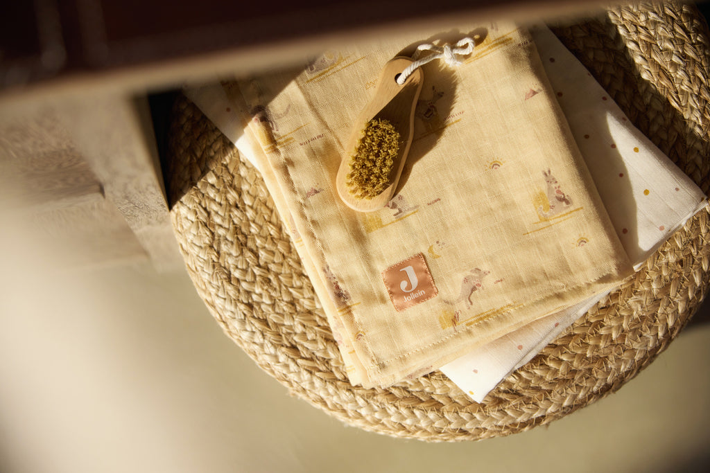 De zachte Vanilla basis wordt gecombineerd met natuurlijke tinten zoals Milky Coffee en Oatmeal, wat zorgt voor een rustige en warme uitstraling. Speelse illustraties en verfijnde details maken dit thema perfect voor kleintjes die zich veilig willen voelen terwijl ze de wereld om zich heen ontdekken. Of je nu kiest voor een dekentje, hydrofiele doek of een knuffelbare kangoeroe, dit lieve thema geeft jouw mini een eigen warm en vertrouwd plekje.