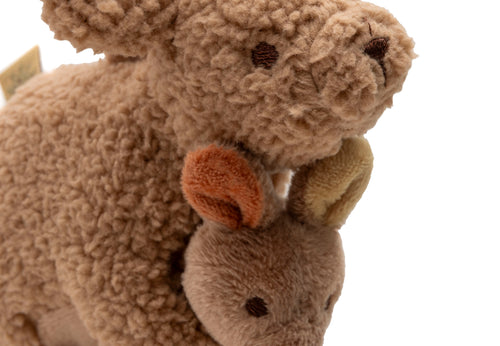 Wie süß ist dieser Kinderwagenanhänger aus dem Kangaroots-Thema! Das weiche Känguru trägt sein Baby sicher im Beutel, wo es fest sitzt. Zusammen bilden sie ein gemütliches Duo, das unterwegs Wärme und Geborgenheit vermittelt. Hergestellt aus superweichem Coral Fleece und mit feinen Details versehen, sieht der Anhänger nicht nur niedlich aus, sondern fühlt sich auch wunderbar an. Dank des praktischen Rings lässt sich der Wagenanhänger leicht am Kinderwagen befestigen, sodass Ihr Kleines das liebe Känguru immer in der Nähe hat.