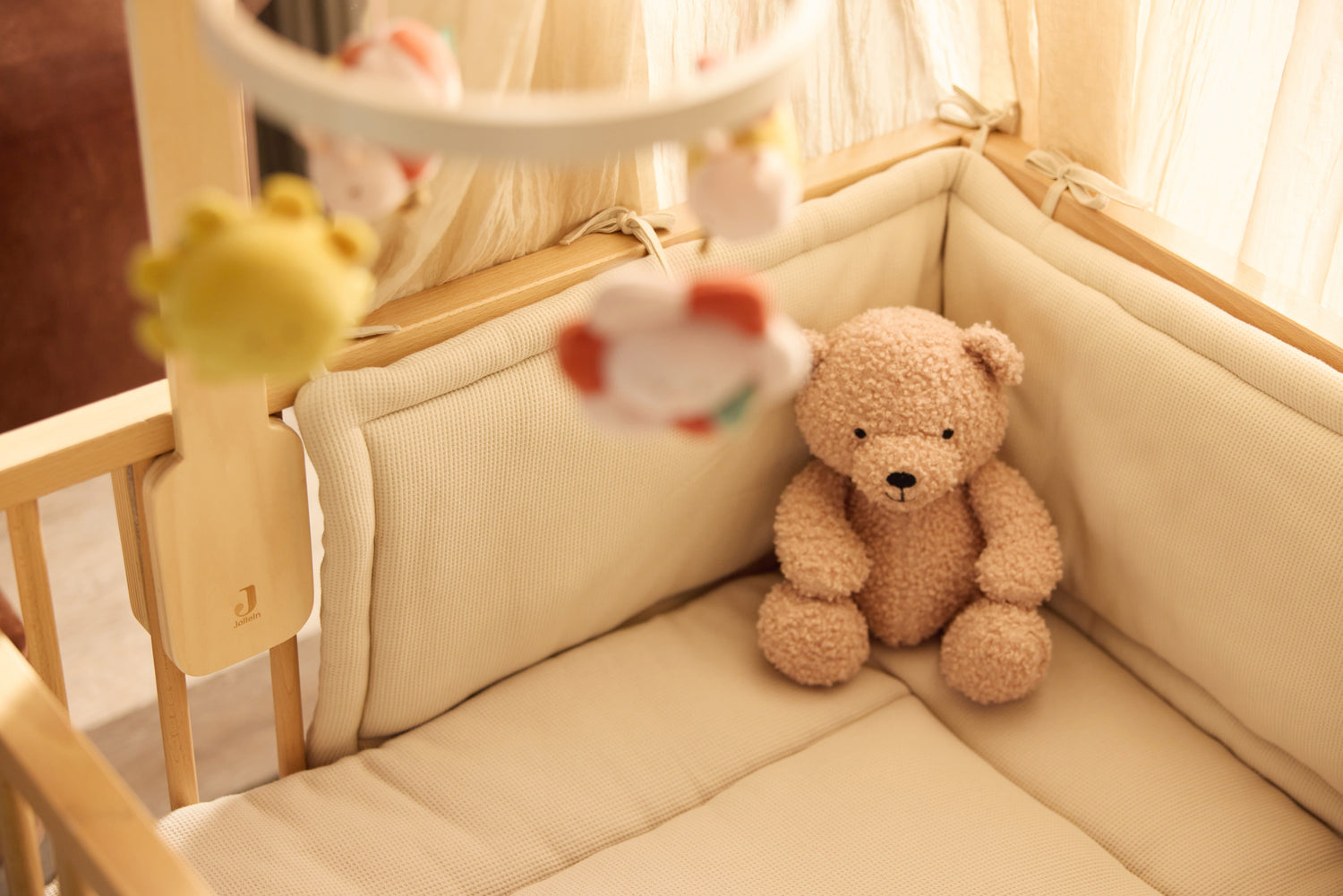 Diese Krabbeldecke bietet Ihrem Kind eine weiche Unterlage zum Spielen oder Ausruhen. Die feine Waffelstruktur fühlt sich angenehm an und sorgt für eine ruhige Ausstrahlung im Raum. Die Decke kann beidseitig verwendet werden, jede Seite in einer anderen Farbe. So können Sie leicht variieren, und die Decke passt immer zur Atmosphäre des Zimmers. Erhältlich in verschiedenen Größen. Ein praktisches und stimmungsvolles Detail für jeden Tag.