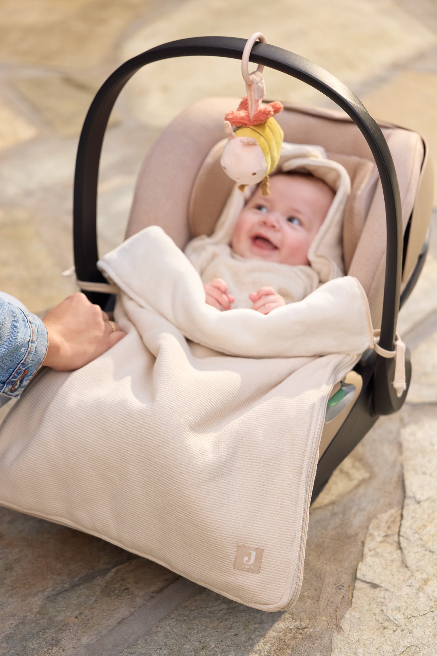 Wie süß ist dieser Kinderwagenanhänger aus dem Pretty Picnic Thema! Die niedliche Biene hat verspielte Details und ein besticktes Gesicht. Innen befindet sich Raschelpapier und eine kleine Glocke, wodurch die Biene noch mehr Spaß macht. Dank des praktischen Rings lässt sie sich leicht am Kinderwagen befestigen, sodass dein Kleines unterwegs immer etwas zu entdecken hat.