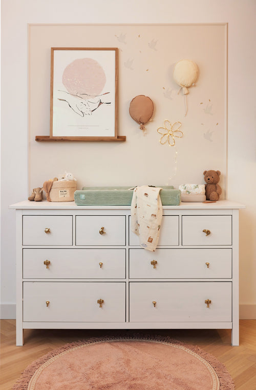 Auf der Wickelauflage wird dein Baby oft liegen. Warum dann keinen schönen Wickelauflagenbezug aussuchen wie diesen aus Baumwolle? Der schöne Strickstoff sorgt für einen luxuriösen Look. Außerdem ist dieser Bezug zu 100 % GOTS-zertifiziert! Der Bezug lässt sich mit Druckknöpfen verschließen, sodass er auf der Wickelauflage nicht verrutscht. Du wirst schnell feststellen, dass du nie genug Wickelauflagenbezüge haben kannst. In jedem Fall wirst du den Wickelauflagenbezug einmal am Tag und sogar mehrmals täglich austauschen müssen.