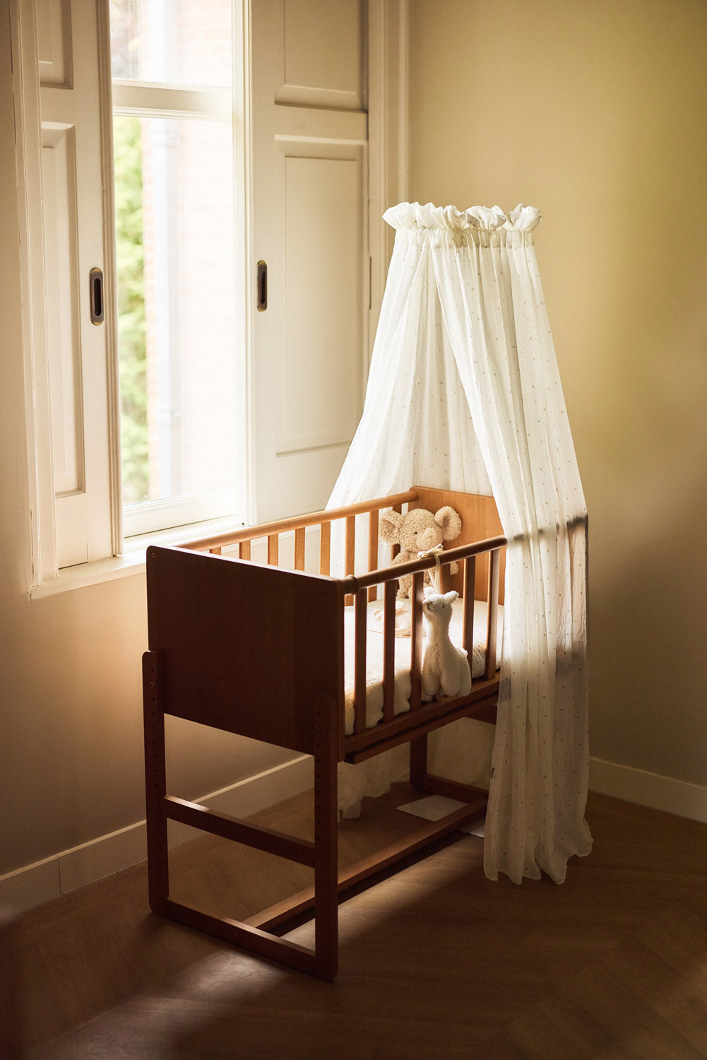 At Jollein, you can find the most beautiful canopies and mosquito nets to add that extra functionality and finishing touch to your nursery. A soft canopy gives a warm and cosy atmosphere while safeguarding your little one from mosquitoes and other insects in the summer months. Combine with canopy & mosquito net poles.