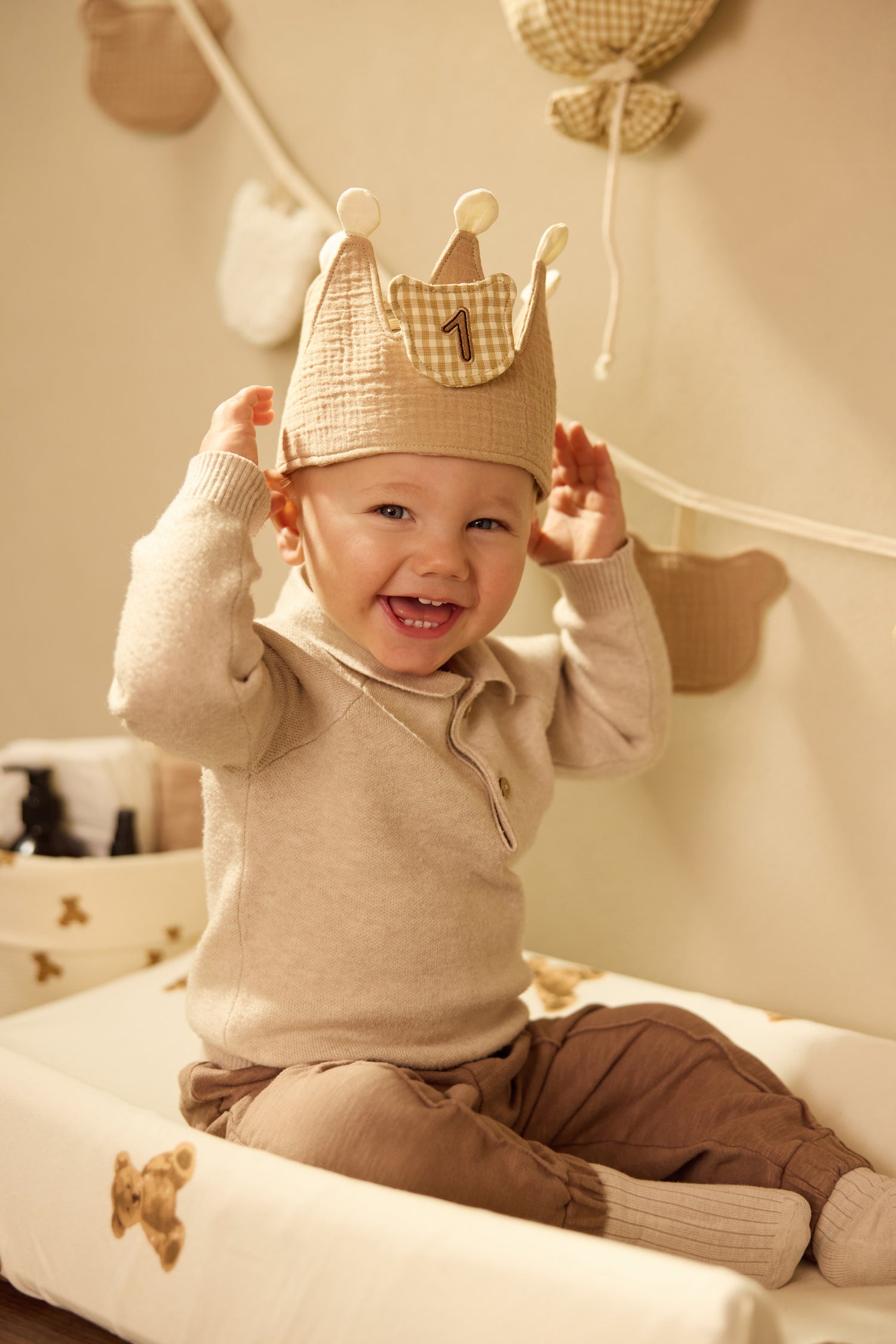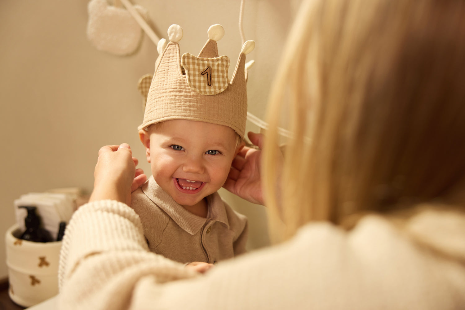 Birthdays become extra special with this festive crown! As soon as your little one puts it on, the celebration begins. The soft crown is comfortable to wear and comes with detachable numbers from 0 to 4, so it grows with every birthday. From the very first birthday through the toddler years: the same crown, each time with a new number. Thanks to the Velcro fastening, you can swap the number in just seconds. Ready to celebrate again and again!
