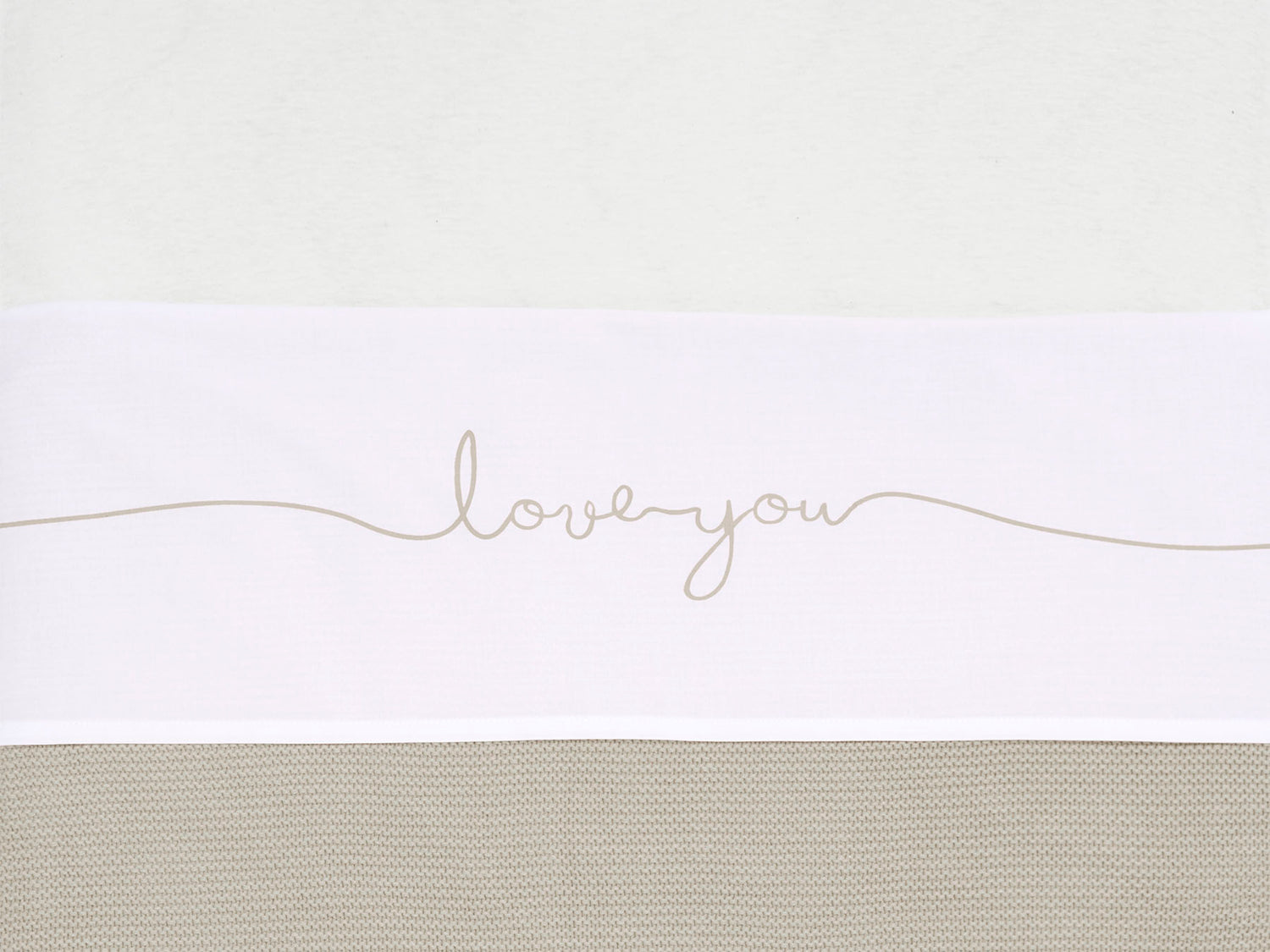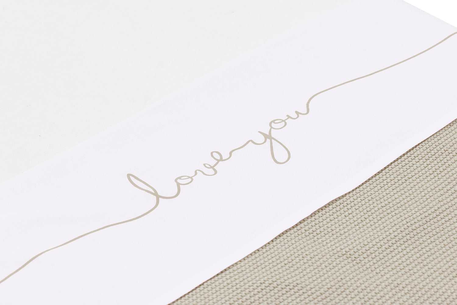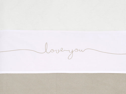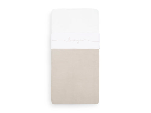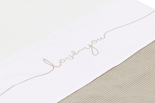 Nice white sheet with text from Jollein. The sheet is made from cotton and its size is 75x100 cm. The sheet is white and the text ‘Love you’ is in nougat colour.
