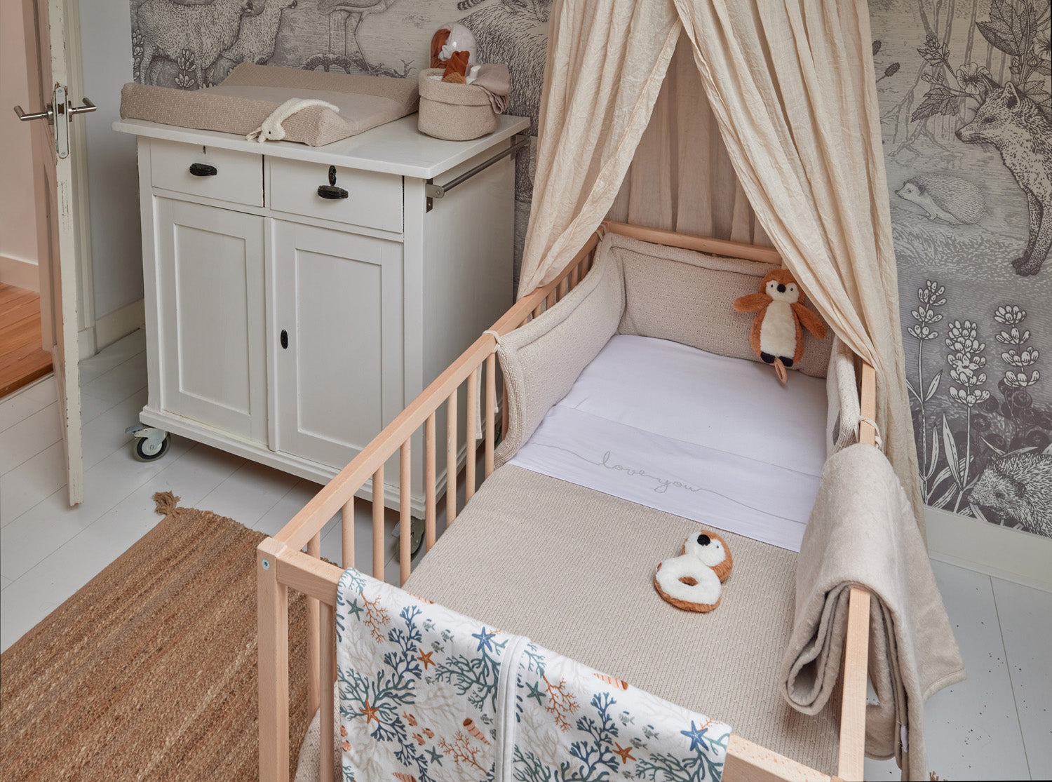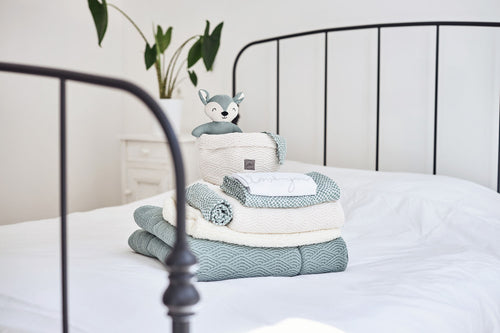 With a white sheet you can make your baby's bed safe, short and tight. By tucking the sides of the sheet under the mattress, your little one not only sleeps safely, but also has a sense of security. This sweet sheet with the text 'love you' fits perfectly with the blankets from the Basic knit theme and the Bliss knit theme from Jollein.