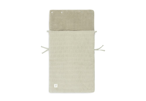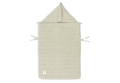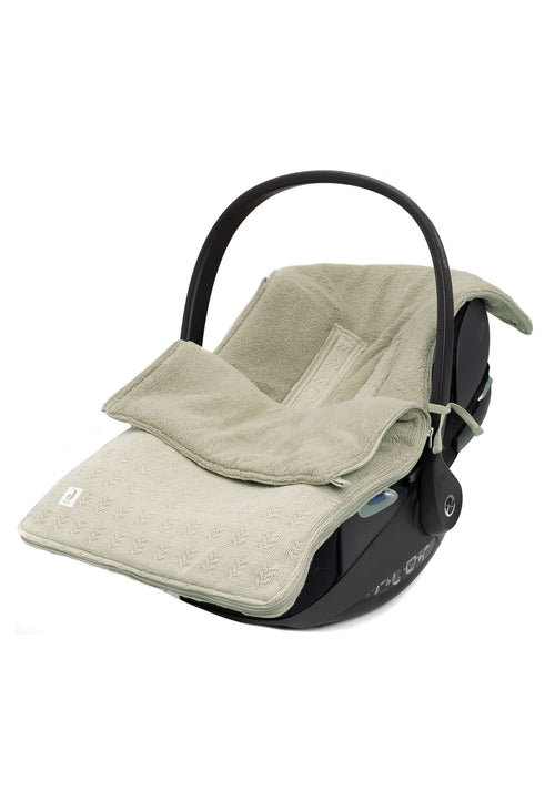 Le tissu tricoté à l'extérieur de ce nid d'ange lui confère une allure chic et le tissu polaire ultra-doux à l'intérieur assure à votre bébé davantage de confort. Un nid d'ange est une véritable aubaine! Pour installer votre bébé dans le nid d'ange, il suffit de commencer par dézipper complètement le nid d'ange. Il est également possible de retirer très simplement votre bébé du siège auto en dézippant complètement le nid d'ange. Un bouton-pression permet de transformer rapidement le haut du nid d'ange en bonnet pour garder la tête de l'enfant au chaud lorsque vous sortez le siège-auto pour une promenade. Pour que votre bébé n'ait pas trop chaud dans la voiture, ouvrez la fermeture éclair aussi loin que nécessaire. Bref : un nid d'ange extrêmement pratique pour votre bébé. Le nid d'ange est doté d'ouvertures à l'arrière pour faciliter l'attache des harnais. Il s'agit d'un nid d'ange universel pour Maxi Cosi et toute autre marque de siège auto de catégorie 0 avec un harnais à trois ou cinq points d'ancrage. Vous pouvez également utiliser ce nid d'ange dans le landau. Votre bébé sera bien emmitouflé pour la promenade en un rien de temps. Disponible en flocon d'avoine, rose sauvage et vert olive. Cette chancelière n’a pas de valeur TOG, car elle est conçue pour garder votre enfant au chaud lors de vos déplacements et non pour être utilisée comme sac de couchage.