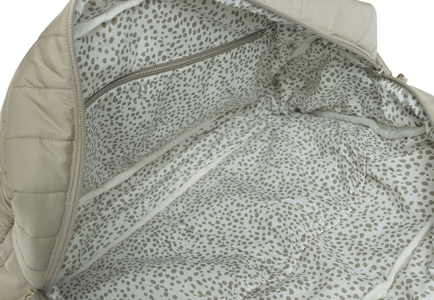 Ce puffy bag, très tendance, est un véritable complément à votre équipement de bébé. Il est en effet très pratique, avec ses poches intérieures et sa poignée réglable qui permet de le porter à l'épaule ou de le suspendre à la poussette. Mais il attire également tous les regards. L'effet bouffant le rend vraiment branché et la doublure intérieure présente un joli motif à pois. C'est tout ce dont vous avez besoin pour un sac à langer ! Livré avec un tapis à langer nomade assorti. Disponible dans teintes naturelles et élégantes. Astuce : associez votre sac à langer à nos crochets pour poussette pour encore plus de praticité en déplacement !