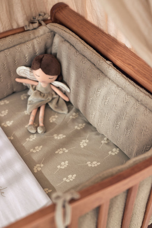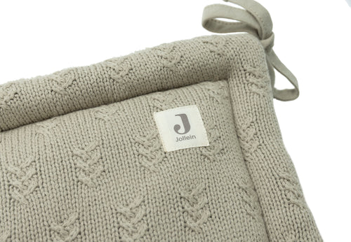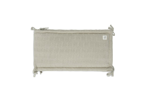 Votre bébé est hyperactif et gigote beaucoup pendant le sommeil ou en jouant ? Ou vous voulez simplement créer un endroit douillet pour votre petit ? Alors optez pour le tour de lit/parc dans le thème Grain Knit. Vous pouvez facilement le fixer aux barreaux du lit ou du parc et vous veillez à ce que votre bébé ne se cogne plus sa petite tête. Le tour de lit/parc est disponible en vert olive, rose sauvage et flocon d'avoine. Fabriqué en coton certifié OEKO-TEX.