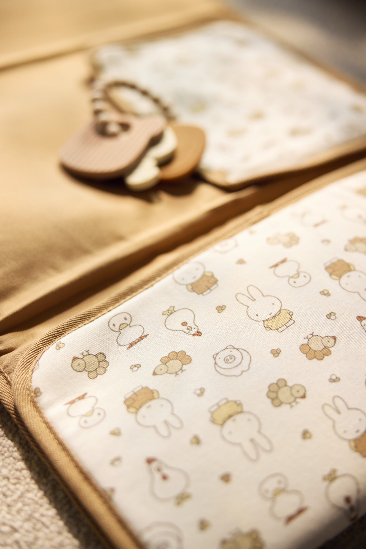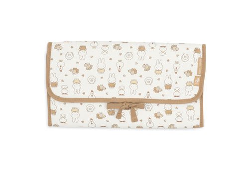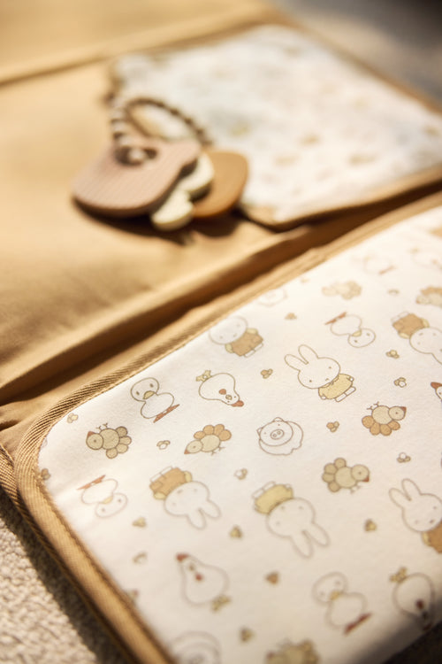Ons zachte verschoningsmatje is de perfecte must-have voor onderweg! Het matje heeft een all-over Miffy Family Farm print aan de buitenkant. De binnenkant is gemakkelijk schoon te maken met een doekje. Het matje heeft handige opbergzakken voor het bewaren van babybenodigdheden en sluit met een strikje voor extra gemak. Praktisch én superlief voor onderweg!